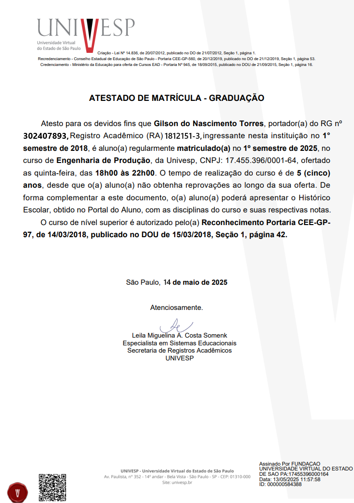 ATESTADO DE MATRÍCULA - COM CNP/ DA UNIVESP